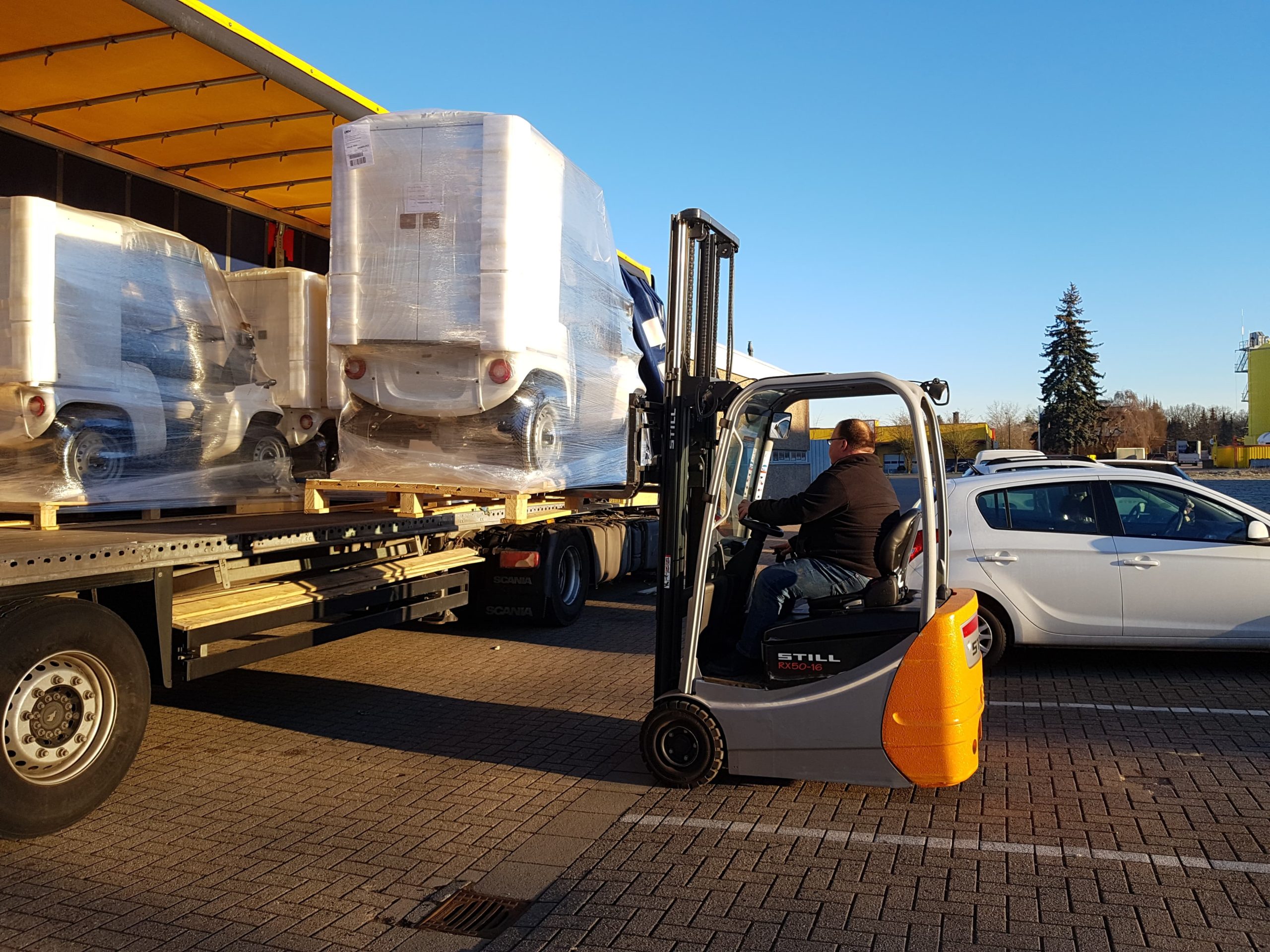 Angeliefert wurden unseren wendigen Elektromobile Ende Februar ´19. Nach kurzer Einarbeitung und ersten Fahrstunden haben dann am 01. März acht dieser bis zu 45km/h schnellen Ökoflitzer das Depot zum ersten Mal verlassen.
