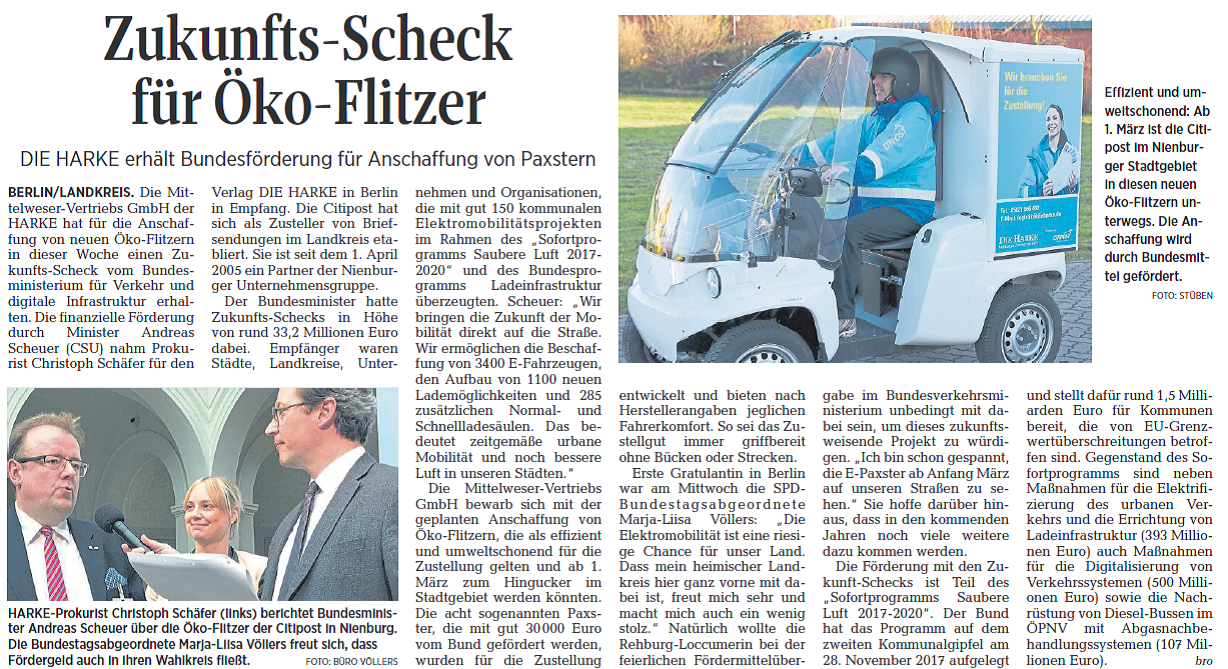 Artikel Die Harke Bundesförderung für Paxster der Citipost Mittelweser